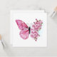Flower arrangement of pink butterfly with pink Japanese cherry blossoms on white background.