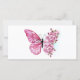 Flower arrangement of pink butterfly with pink Japanese cherry blossoms on white background.