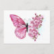 Flower arrangement of pink butterfly with pink Japanese cherry blossoms on white background.