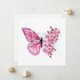 Flower arrangement of pink butterfly with pink Japanese cherry blossoms on white background.