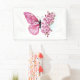 Flower arrangement of pink butterfly with pink Japanese cherry blossoms on white background.