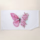 Flower arrangement of pink butterfly with pink Japanese cherry blossoms on white background.