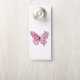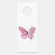 Flower arrangement of pink butterfly with pink Japanese cherry blossoms on white background.