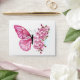 Flower arrangement of pink butterfly with pink Japanese cherry blossoms on white background.