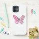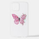 Flower arrangement of pink butterfly with pink Japanese cherry blossoms on white background.