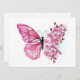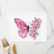 Flower arrangement of pink butterfly with pink Japanese cherry blossoms on white background.