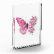 Flower arrangement of pink butterfly with pink Japanese cherry blossoms on white background.