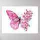 Flower arrangement of pink butterfly with pink Japanese cherry blossoms on white background.