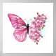 Flower arrangement of pink butterfly with pink Japanese cherry blossoms on white background.