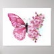 Flower arrangement of pink butterfly with pink Japanese cherry blossoms on white background.