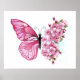 Flower arrangement of pink butterfly with pink Japanese cherry blossoms on white background.
