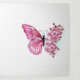 Flower arrangement of pink butterfly with pink Japanese cherry blossoms on white background.