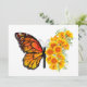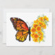 Orange, detailed monarch butterfly with wing decorated with yellow, vibrant California poppy on white background.