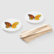 Orange, detailed monarch butterfly with wing decorated with yellow, vibrant California poppy on white background.