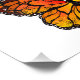 Orange, detailed monarch butterfly with wing decorated with yellow, vibrant California poppy on white background.