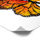 Orange, detailed monarch butterfly with wing decorated with yellow, vibrant California poppy on white background.