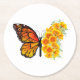 Flower Butterfly with Yellow California Poppy Round Paper Coaster