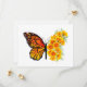 Orange, detailed monarch butterfly with wing decorated with yellow, vibrant California poppy on white background.