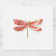 Artistically drawn, gold, jewelled dragonfly with red and wings decorated with red, blooming, jewelled Japanese cherry on white background. Gold Dragonfly.