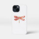 Artistically drawn, gold, jewelled dragonfly with red and wings decorated with red, blooming, jewelled Japanese cherry on white background. Gold Dragonfly.