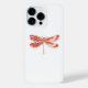 Artistically drawn, gold, jewelled dragonfly with red and wings decorated with red, blooming, jewelled Japanese cherry on white background. Gold Dragonfly.