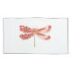 Artistically drawn, gold, jewelled dragonfly with red and wings decorated with red, blooming, jewelled Japanese cherry on white background. Gold Dragonfly.