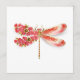 Artistically drawn, gold, jewelled dragonfly with red and wings decorated with red, blooming, jewelled Japanese cherry on white background. Gold Dragonfly.