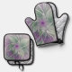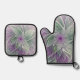 Flower Dream, Abstract Purple Green Fractal Art Oven Mitt & Pot Holder Set