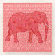 Mixed media digital graphic of an elephant against an arabesque tiled background glass coaster - Flower pattern in shades of deep red to coral red with a coral red and white background
