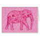 Mixed pattern digital graphic of a richly embellished elephant against an arabesque tiled background - shades of pink from pale pink to deep fuchsia