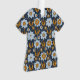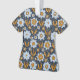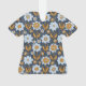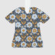 Stylised stem flowers in light blue and ochre brown against a navy background is a fun design for flower lovers, gardeners, green house workers and horticulturists.