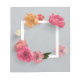 This elegant and attractive design features a square white frame surrounded by flowers in various bright colours, producing a very stylish effect.