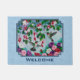 Broad-tailed hummingbirds flying, drinking nectar from the flowers in a brightly coloured spring garden filled with purple, red, white, and pink fuchsias and petunias. Realistic artwork created from an original oil painting by wildlife artist Crista S. Forest.