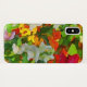 This beautiful iPhone X case presemts features an abstract floral pattern of an informal garden setting with pink and white snapdragons, nasturtiums in orange, yellow and red and one red poppy. The original photograph has been digitally enhanced to produce an impressionistic feeling. A terrific idea for gardeners and all flower lovers!