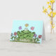 The green spotted frog sits on a rock waiting for his dinner to fly by, but there are no flies, just lots of pretty butterflies! Flower Garden Frog T-shirts, mugs, bodysuits, cards, stickers, magnets, and more.
