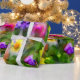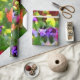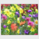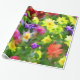 This artistic, floral wrapping paper is covered with masses of flowers in every colour of the rainbow. Enjoy the yellow, orange, pink, red, blue, purple and white abstract pattern set on a background of green leaves. When viewing this, one is reminded of a French Impressionist painting.