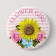 Flower Girl bridal shower button with pink stripes sunflowers and roses.