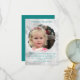 Say thank you to the flower girl with a pretty card containing her picture! White floral background, turquoise green, fun text and a sample message. Her photo is in a brushstroke, round frame, which makes the edges uneven. Add a wedding photo of the Flower Girl. Reverse is solid turquoise. Change colours using the design tool.