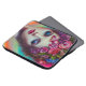 A beautiful ai-generated art nouveau portrait of a woman in a hat made of flowers, surrounded by a rainbow aura. It would be a beautiful addition to a boudoir or a girl's bedroom.