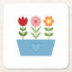Flower Illustrations in a Blue Window Box Canvas P Square Paper Coaster