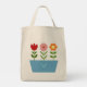 Flower Illustrations in a Blue Window Box Tote Bag