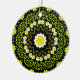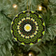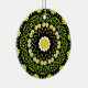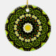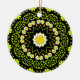 A round ornament with a kaleidoscopic mandala pattern based on a drawing of flowers