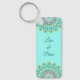 Personalize this Unique "One of a Kind" Mandala Keychain! It Features a Beautiful Turquoise, Pink and Green Flower Mandala Geometric Design.....on a Black Background! A Mandala is a Spiritual and Ritual Symbol...Transforming the Universe from One of Suffering into One of Joy and Happiness!
