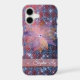 This is a unique and very pretty case that she will love! It features an ethereal, semi transparent image of a pink and violet flower with a tiny gem image at the centre. The ghostly flower image seems to float on a jewel like purple and pink background with tiny lights dancing around it. Her name is in white on a semi transparent pink banner near the bottom of the case. Beautiful, and slightly mysterious!