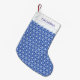 Beautiful white flower of life pattern on light blue background Christmas stocking. Name can be customised. The flower of life belongs to sacred geometry.