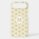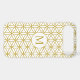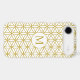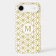 The flower of life symbol in a repeat pattern with a center circled initial for a personalized item in gold detail on a white background.