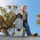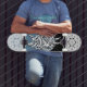 Skateboard depicting sacred geometry accompanied by graffiti from the last page of " My First Graffiti Colouring Book."