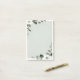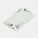 Beautiful white flowers are overlaid on a sage green center with a clean, white border around it. Very graceful and feminine design.
