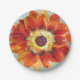 Orange, yellow, blue floral painting paper plate design.