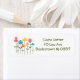 These return address labels have a mid-century modern design of flower made from squares, ovals, and diamonds that have been manipulated to form flowers.